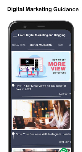 In this application, we give Digital Marketing Tutorials, Blogging Tutorials, SEO Tutorials and Some Success Case Study regarding Online Business. If you want to start your own Digital Marketing Agency or Own Blog then Our Application Learn Digital marketing and Blogging is a help to you step by step.