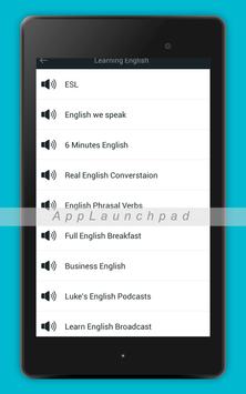 - Podcasts are provided from popular resources, such as ESL, English we speak, 6 Minutes English, Real English Conversation, English Phrasal Verbs, Full English Breakfast, Bussines English, Luke's English Podcast and more
