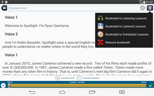 You can download audio to use OFFLINE.