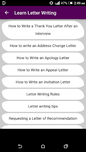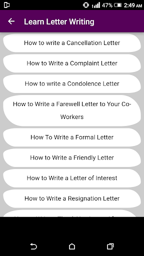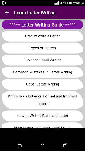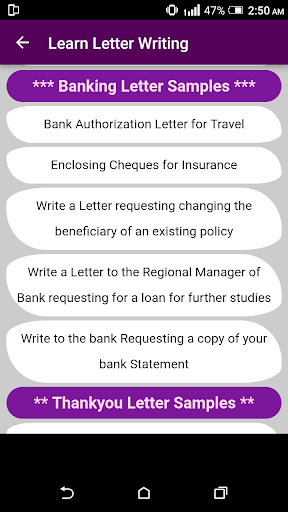 This app contains multiple samples of formats of letter writing along with business letters writing formats in multiple categories