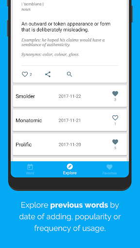 A new day, a new English word to discover as a more efficient and effortless way to enrich your spoken and written English, with the help of "English Daily" app: