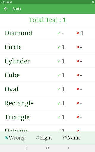 - Quiz available for each category for improving the memory skill.
