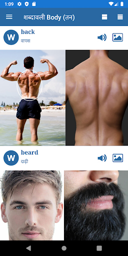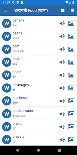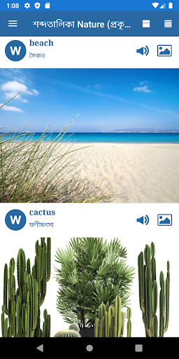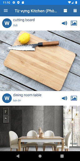 This is a good application to learn English words. You can see pictures linked to words, hear the English pronunciation and memorize them. You see the original and translated words.