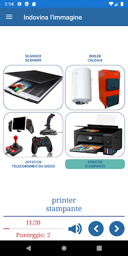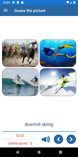 The application to learn English words by pictures includes 4 games.