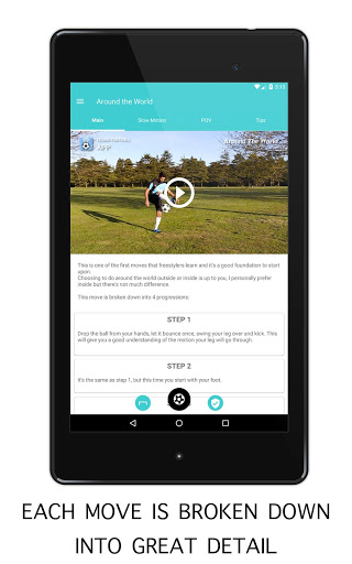 Learn and improve your football / soccer skills, tricks, moves, turns. Suitable for beginners, intermediate and advanced players. It's like carrying a football coach in your pocket!