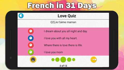 This app will teach you how to speak French from start to end. This app includes lots of french vocabulary with interactive learning materials. This app even teach you french alphabets, theory, parts of speech, grammar and many many more.