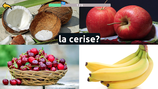 Now, start learning from apple (la pomme) to watermelon (pasteque). Exotic fruits and vegs are included in the app. The educational app is suitable for kids. Kids will learn with colorful pictures, games.
