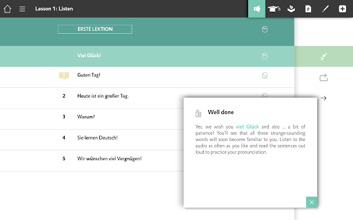 - 110 lessons and corresponding audio (2 hours 40 minutes of audio) recorded by native speakers