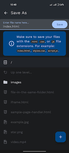 4. Code Playground/Editor with syntax highlighting and additional keyboard keys that allows you to open and save files from your local storage.
