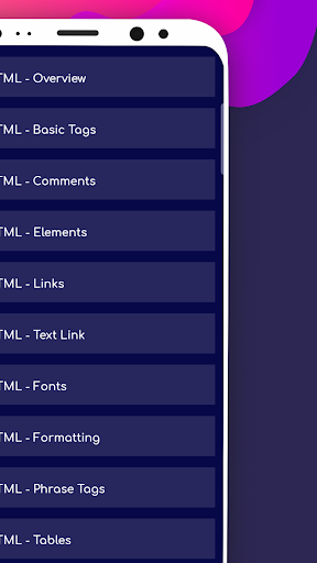 HTML Tutorials and tpoics that cover by this app are follows:-