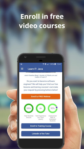 - also you are able to enroll to free training courses inside the application and learn java with our key tutor who has 4 years of teaching experience.