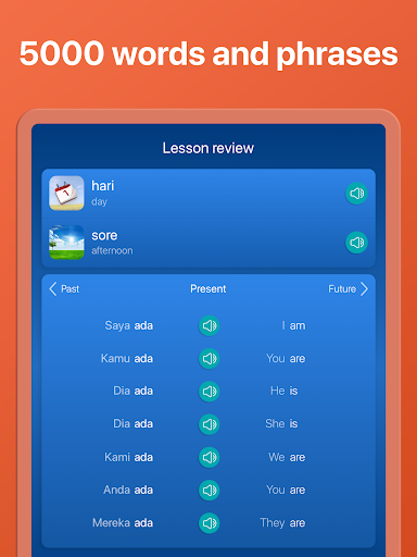 Learn Indonesian with free lessons daily. Let Mondly teach you the Indonesian language quickly and effectively. In just minutes you’ll start memorizing core Indonesian words, form sentences, learn to speak Indonesian phrases and take part in conversations. Fun Indonesian lessons improve your vocabulary, grammar and pronunciation like no other language learning method. Beginner or advanced learner, traveler or business professional with a tight schedule? The app works great and dynamically adjusts to your needs.