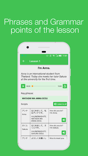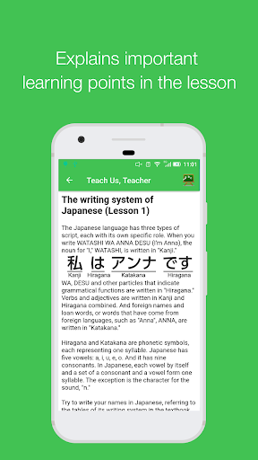 I would like to give it four stars because its whole experience is good but it should have a feature that will correct my pronunciation and anything else but overall nice app . I like the way you are teaching japanese with a story and in between the explanation you are including grammar and vocabulary too.😃😃😄