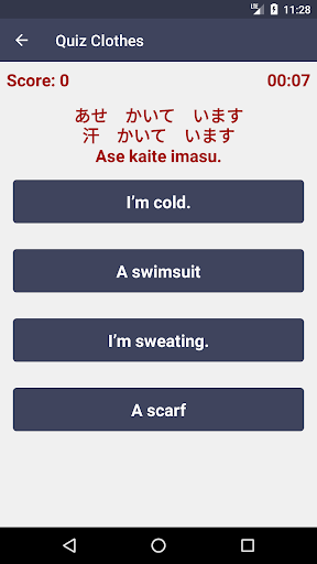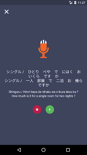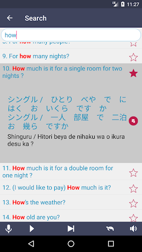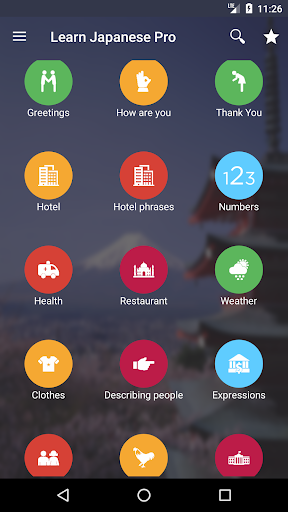 "Learn Japanese Free" include over 5000 phrases with 65 categories(Greetings,How are you,Meeting,I love you,Thank You,Hotel,Numbers,Japanese Hotel phrases,Health,Restaurant,Weather,Clothes,Describing people,Love and Romance,Japanese Expressions,Going out,Questions,Airport...) serve the purpose at tourists and business people visiting Japan