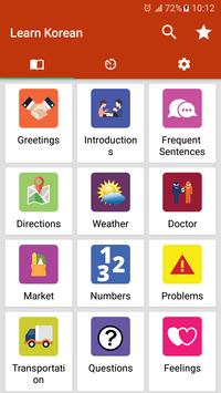 If you are trying to learn how to speak and read Korean this education app for you. You learn through a variety of topics: Greetings, Introductions, Frequent sentences, Directions, Weather, Doctor, Market, Numbers, Problem, Transportation, Question, Feelings, Hotel, Shopping, Restaurant, Time, Date, Sports, Colors, Animals, Body, Travel and nature, School, Astrology, Interview, Car, Work.