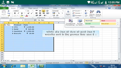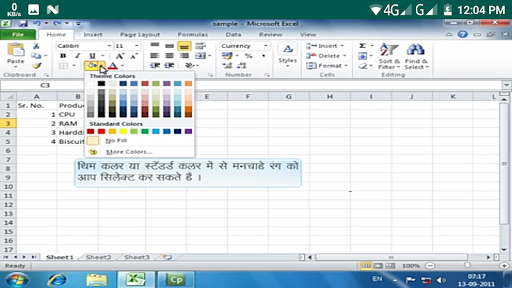 apply cell shading and create excel table.Step by step video lecture of M S Excel in Hindi.