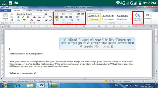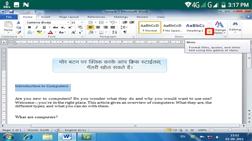 कम्प्युटर कोर्स हिंदी में : एम एस वर्ड २०१० अॅप में आप बेसिक ऑफ मायक्रोसॉफ्ट वर्ड २०१०, डॉक्युमेंट में टेक्स्ट फॉरमॅटींग करना । डॉक्युमेंट में हेडींग अॅड करना ।