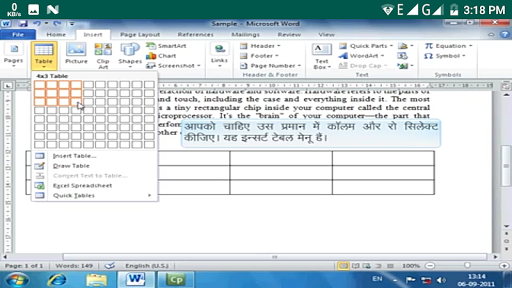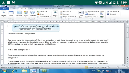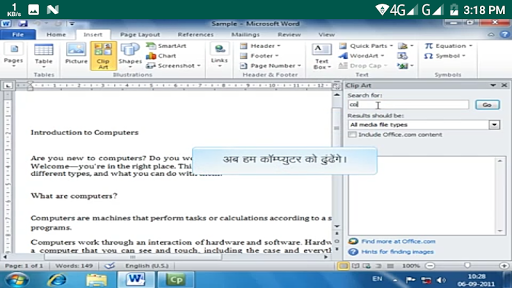 वर्ड २०१० बेसिक टेक्स्ट फॉरमॅटींग हेडींग अॅड करना लाईन स्पेसींग इन्सर्ट क्लीप आर्ट या पिक्चर इन्सर्ट टेबल इस अॅप में है ।