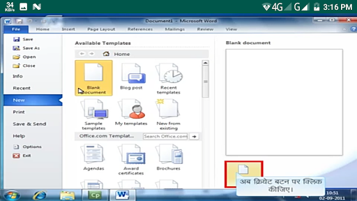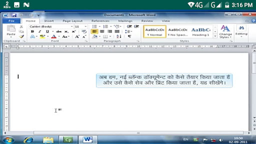 in Hindi.Step by Step video lecture of M S Word 2010 in Hindi.