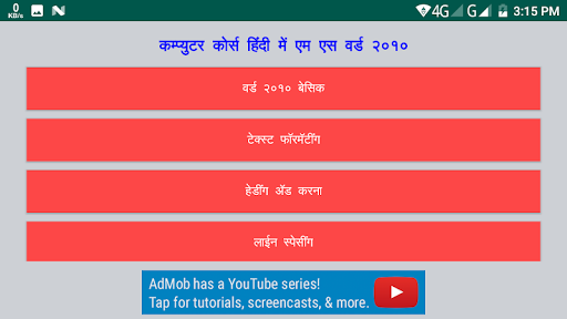 Learn computer course in Hindi.In this app student can learn about Microsoft Word 2010