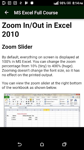 This is the simple and minimal app designed for Learning and Developing skills in MS Excel.
