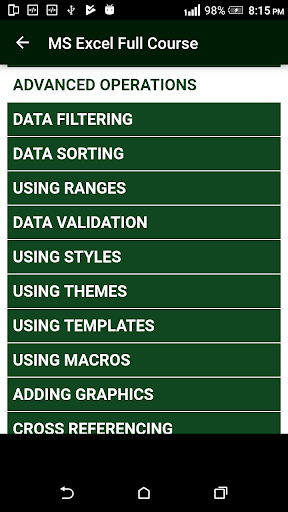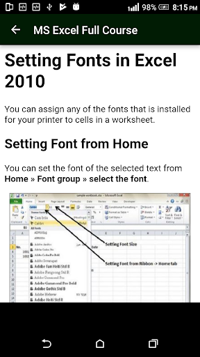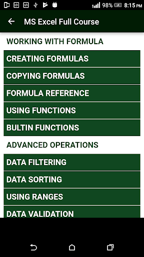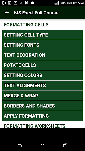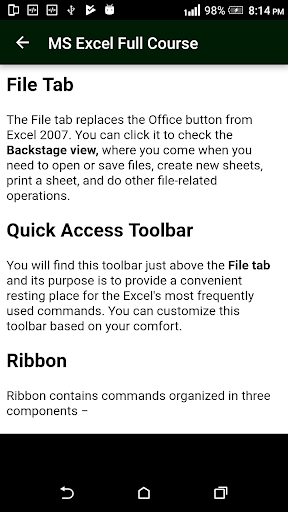 MS Excel Full Course - Complete learning of Microsoft excel software. user friendly design and offline app. any user can access app from anywhere anytime without internet.