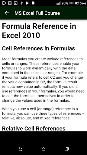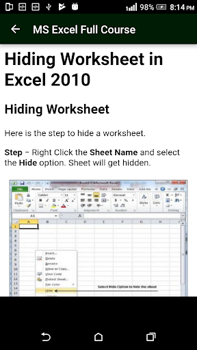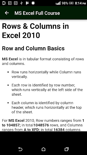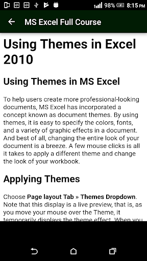 its a great app...it teaches excel from scratch ..it has been very helpful...the only issue is too many adds any time you try going back..
