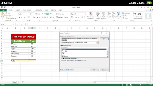 Important: This is not original excel application. This app is designed for the purpose of learning to use Excel only.