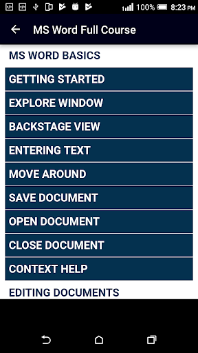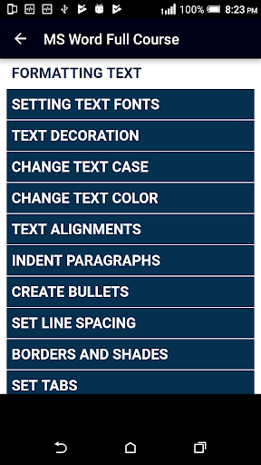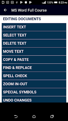 In this app we discussed about each and every aspect of MS Word from basics to advanced.