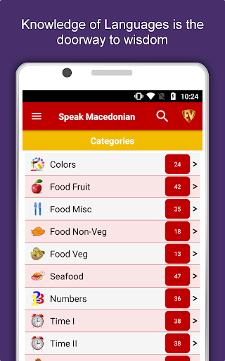 The offline Macedonian learning app has 2,135 words with 55 categories. It contains pronunciation, images and phonetics of words for easy learning. Switch base language, Save learnings in EduBank℠, audio play, Potpourri and retention games are the main features of Speak Macedonian app.