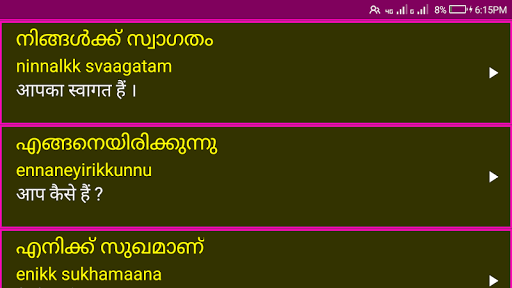 5. Achieve Your goal of Speaking in Malayalam . This app is made to teach you Spoken Malayalam from hindi. Now speak Malayalam easily with the help of this app.