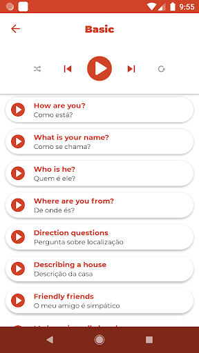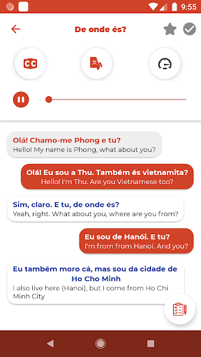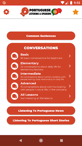 "Learn Portuguese - Listening And Speaking" is one of PORO’s ongoing apps for self-learners who want to speak Portuguese easily and effectively. With 115 daily dialogs, a list of lessons with various topics from greeting, introduction, shopping, business conversation, family talks, etc…. It's suitable for all Portuguese learners from beginner to intermediate and advanced learners to practice speaking Portuguese.