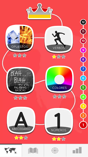 Basic: Alphabet letters , Numbers , Colors , Verbs , Food …