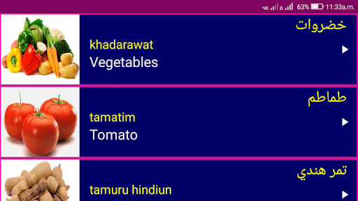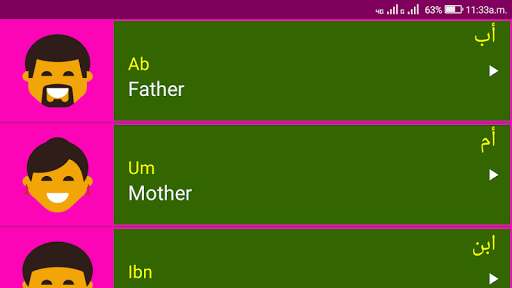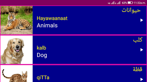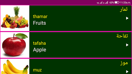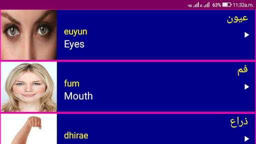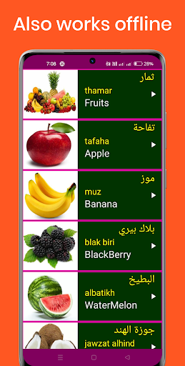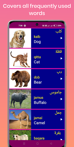 2. Each Arabic word has a clear image 📸🖼️ and audio pronunciation 🎵🔊 to make Learning Arabic via English Easy.
