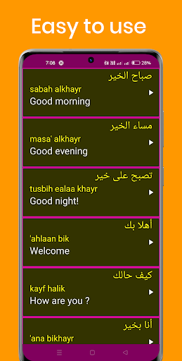 5. The app contains all frequently used Arabic words and sentences to help you understand and talk Arabic in different situations of life. ⛱️✈️🚙🚑