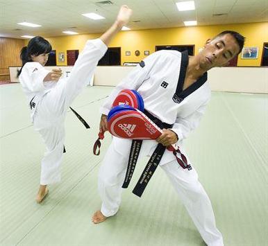 Taekwondo training involves practicing individual techniques and counters, sparring, board-breaking techniques, taekwondo classes and pattern training.