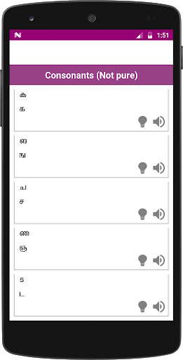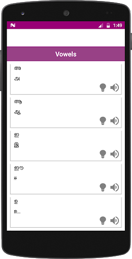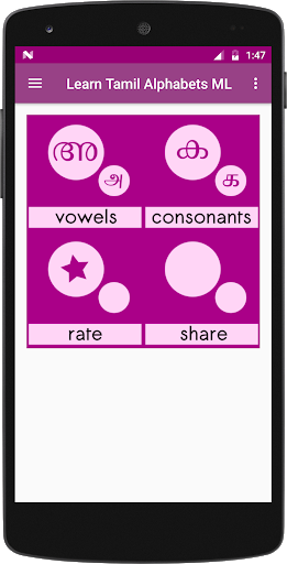 The app helps to learn Tamil alphabets in the Malayalam language. It is bundled with vowels and consonants. Moreover, you have an opportunity to hear and see every letter of Tamil language.