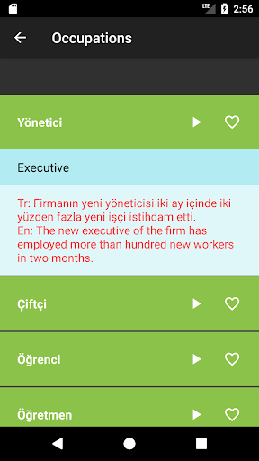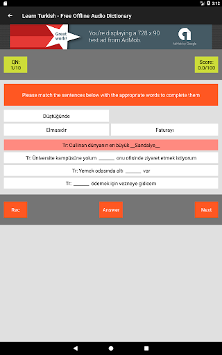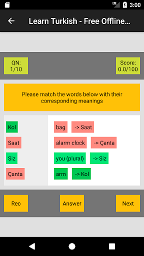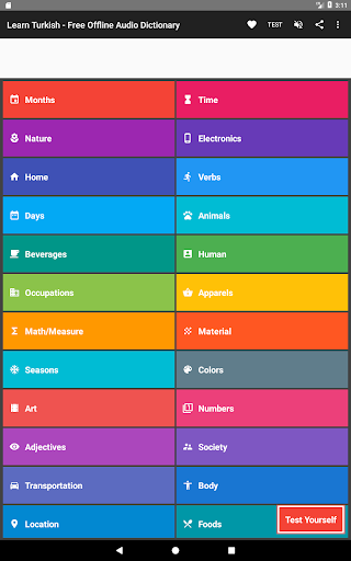 "Learn Turkish" is a full free and offline word practicing audio dictionary. It has been prepared for beginners to Turkish and can be used without internet connection.