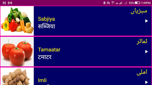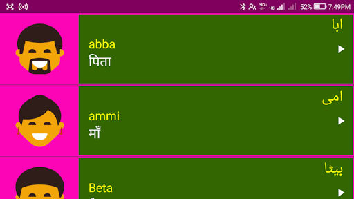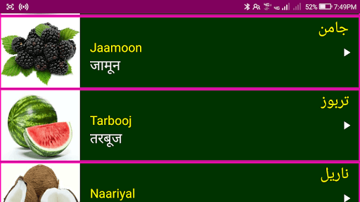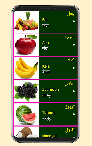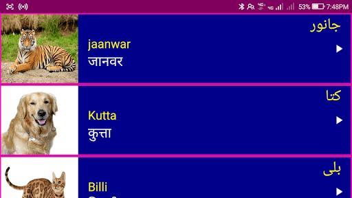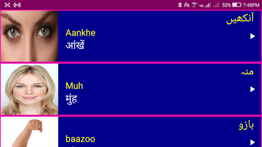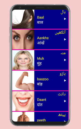 2. Each Urdu word has a clear image 📸🖼️ and audio pronunciation 🎵🔊 to make Learning Urdu via Hindi Easy.