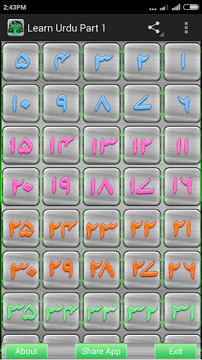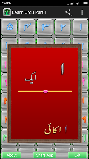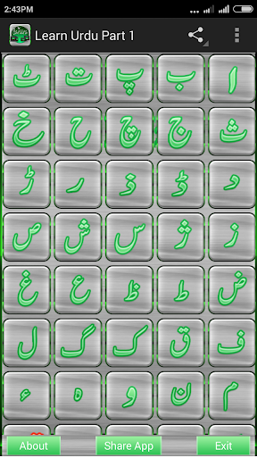 * Urdu learning app. * This is a free application created for helping in learning Urdu language . * Urdu Alphabets with Sound. * Urdu numbers with sound. * Best and easy to use interactive application for everyone.