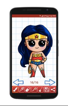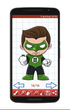 Learn to Draw & Color Cute Little Heroes have a simple design and most importantly, fast to draw. Moreover it also provides simple step-by-step instructions that will nurture creativity and confidence as youngsters learn how to draw your favorite super heroes.