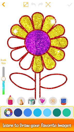 Unleash your creativity as you draw a unicorn,mandalas,animals etc that you like from your own unique perspective.Make every idea a reality by saving unlimited drawings in your Sketchbook with glitter coloring and sharing them with friends.As you explore each colorful environment,choose from an assortment of drawing glitters and tools to help you successfully overcome every obstacle along the way.