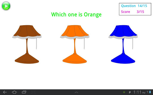 Color Matching: This is a game where the child has to listen to the question and select the correct color.