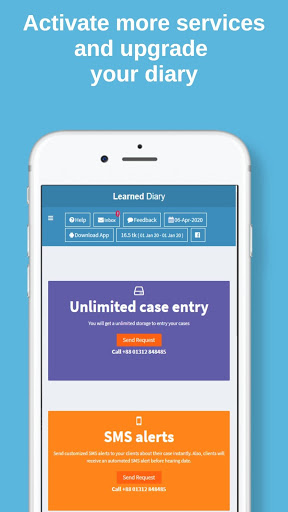 "Learned Diary" is a compatible Android App/ Website. The handwritten diary system for preserving the facts of the case is largely inappropriate and outdated. Which is very disrespectful to the contestants legal profession. * Could not inform the client if the diary was not near, * Could not benefit a client due to lack of information on the case only a few years, * Could not monitor the diary from outside the country if necessary. If the diary is lost due to suffering, there is no end to suffering. We believe that our "LEARNED DIARY" Android App/Website will release wise lawyers from many such obstacles.