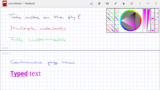 LectureNotes is an Android app for note-taking by handwriting on the screen, in particular with a stylus.