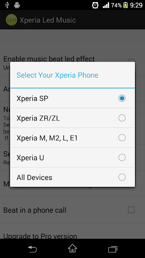 Only xperia SP can be blinked music led effect other devices will blink random when music starts.