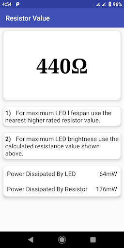 LED resistor value calculator is one calculator for LED, resistors (R), volts (V), Amps (A), and watts (W), it's simply an led resistor finder that helps you easily find the right resistor to put in your LED circuits. We also have led resistor calculator pro, in case you don't want Ads in the App.