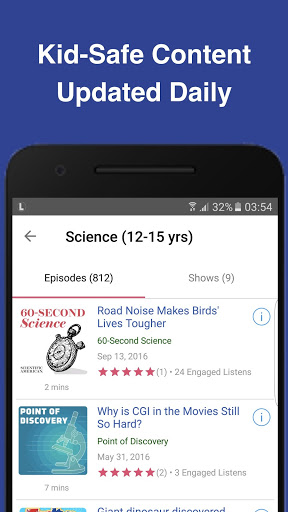 We have curated best episodes from different podcasts based on your kids age group and topics of interest (Stories, Science, Space, Curious, Dinosaurs, Ocean, Music & Animals). Just click & listen. As easy as that!