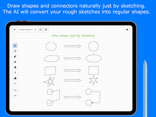 Lekh is an online whiteboard and intelligent diagramming tool. It empowers you to express your ideas simply by sketching shapes with your finger. The best in class shape recognition technology of the Lekh will recognize your rough sketches and will convert them into shapes.