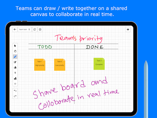 • Collaborate with others in real time. Multiple users can draw the canvas at the same time.